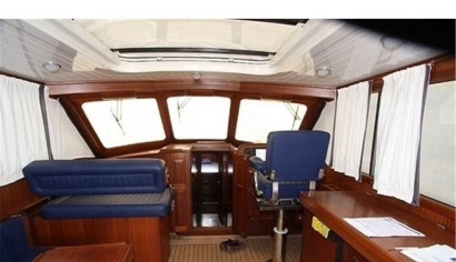 Ce modèle sorti des chantiers Turcs de la socièté EGEMAR en 2003, n'existe qu'en 6 exemplaires. Il est unique en France. Ses 48 pieds auquels s'ajoute une plage arrière, lui donne ses 16 m de long sur 4,10 m de large. Il développe au total 880 cv qui lui donnent une vitesse de croisière de 18 noeuds avec un maximun de 25 noeuds. Le teck du pont, la coque en bois et l'acajou intérieur contribuent largement à son poids de 18 tonnes à vide. Ce poids et une coque de bateau de pêche lui donne une grande stabilté (pas d'effet "savonnette"ou "tape-fesse") et fait qu'il coupe remarquablement bien la vague. Racheté en 2016 , rééquipé et restauré cette année, il a retrouvé son esthètique initiale.